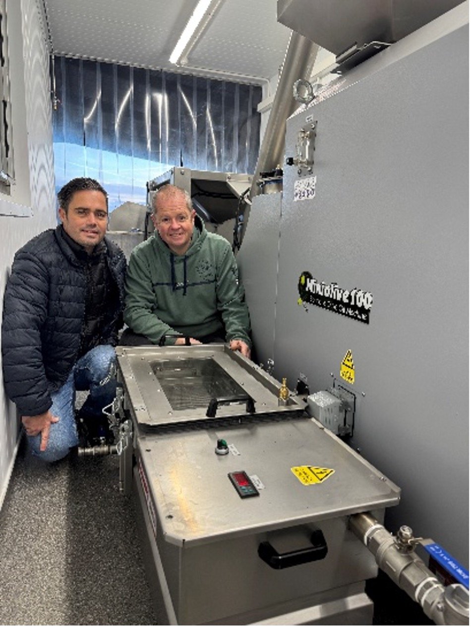The Kocamaz Mini Olive 100 washing and pressing line.  David with Mr Serkan Kocamaz.