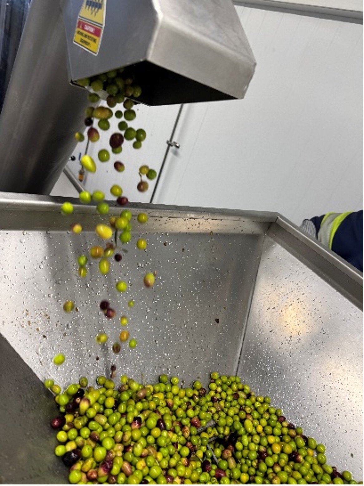 We chose a large boutique style olive press machine that can operate at a continuous flow of 100kg/hour, sourced from Turkey, and associated other equipment for the production line from Spain and Italy.  Unfortunately, the delivery of this equipment got held up on the container ship, and arrived with us five weeks later than planned!  During this time we lost over half of the olives to strong winds and frosts, and we didn’t have a great deal of olives in the first place with the trees only in their 3rd year of life!