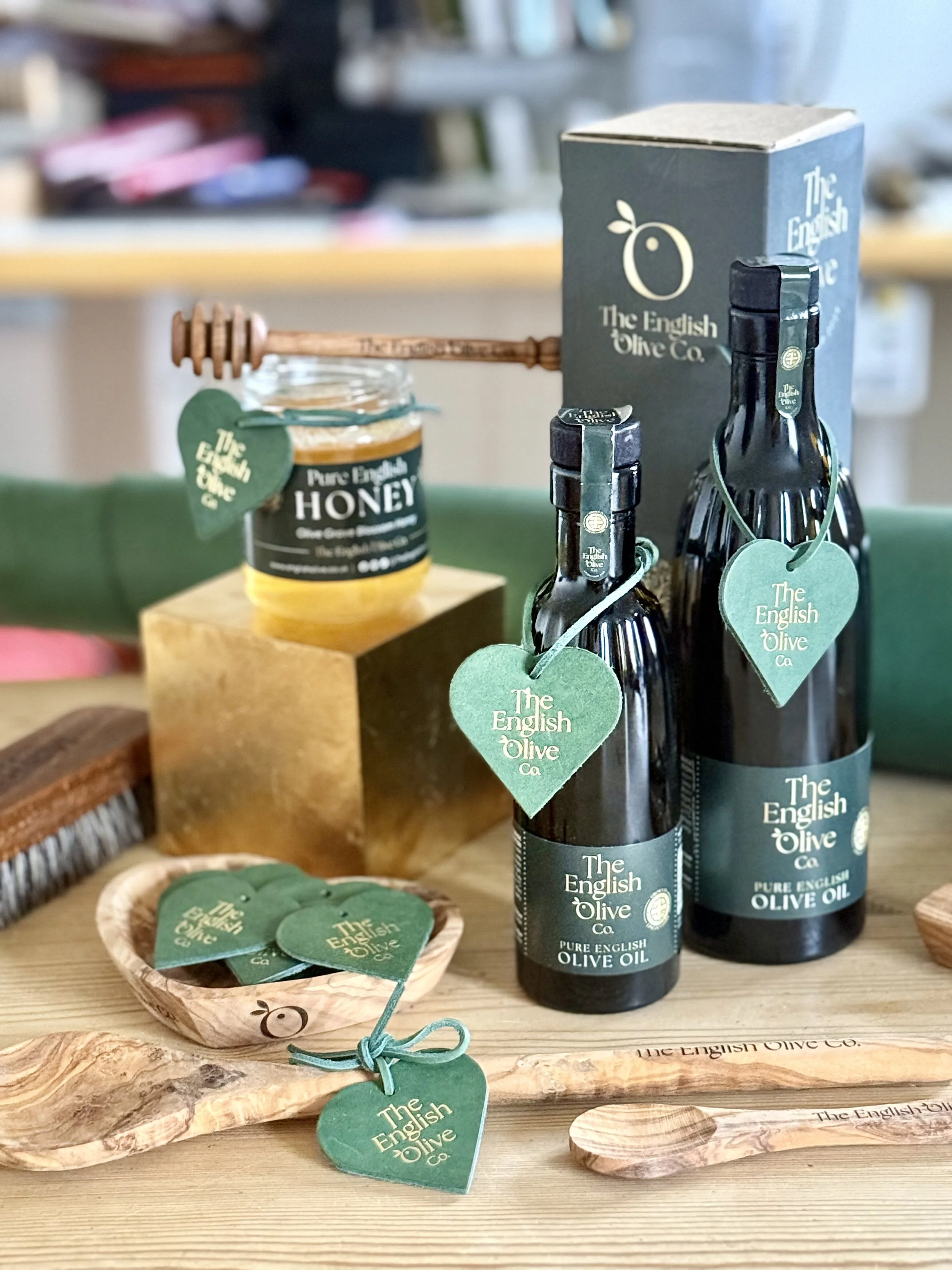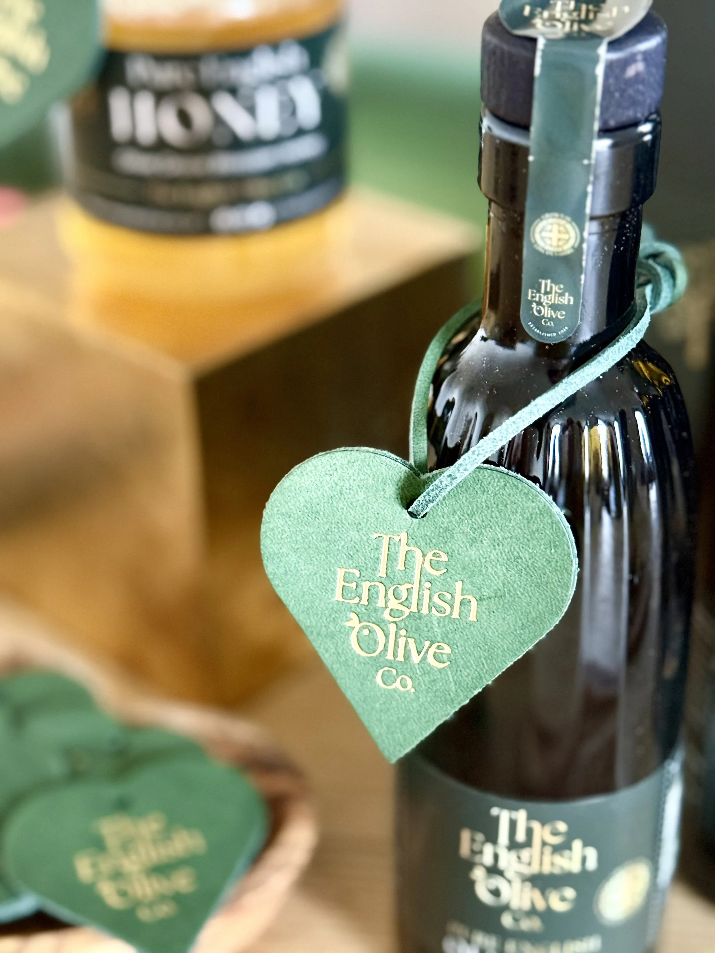 Working with luxury leather brand Priestleys (www.priestleys.uk), who are also based in Lincolnshire, Karrie has hand cut and crafted a limited number of beautiful leather heart shaped bag / bottle ties for us, embossed with The English Olive Co logo. These premium leather ties are suitable to hang over any bottle, be it olive oil, wine, whisky or perfume, or are equally suited to be tied on to any bag or laptop case as a little reminder of your loved one. The leather is responsibly sourced, from the Leather Working Group using premium vegetable-tanned leather.